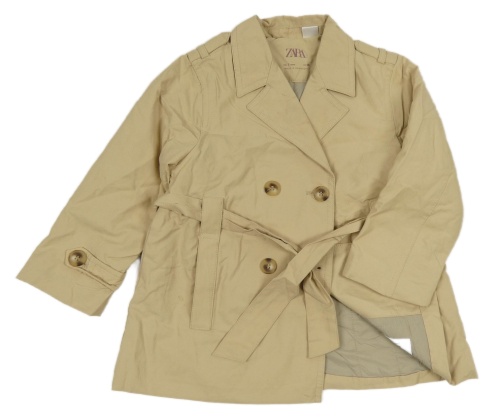 Nové - Béžový šušťákový lehce zateplený kabát s opaskom Zara