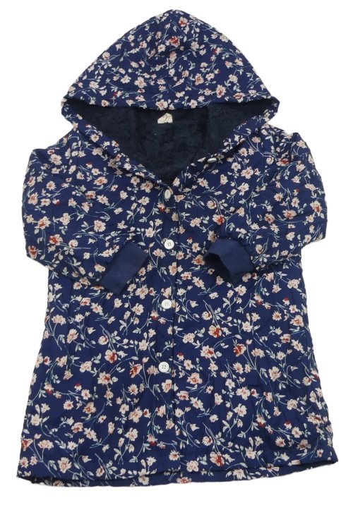 Tmavomodrý zateplený kabát s kvietkami a kapucňou SHEIN