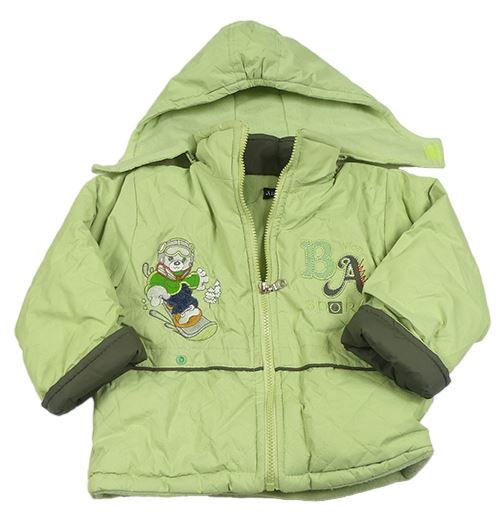 • Svetlozelená šušťáková zimná bunda s medvedíkom a kapucňou