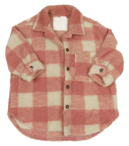 Ružovo-smotanová kockovaná huňatá košeľová bunda Next