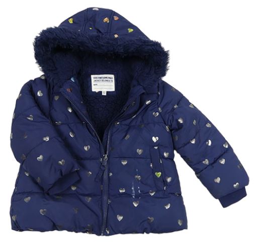 Tmavomodrá šušťáková zimná bunda so srdiečkami a kapucňou M&S