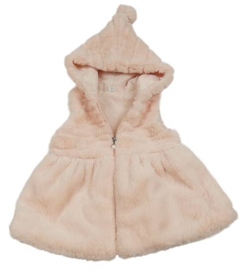 Svetloružová kožušinová podšitá vesta s kapucňou