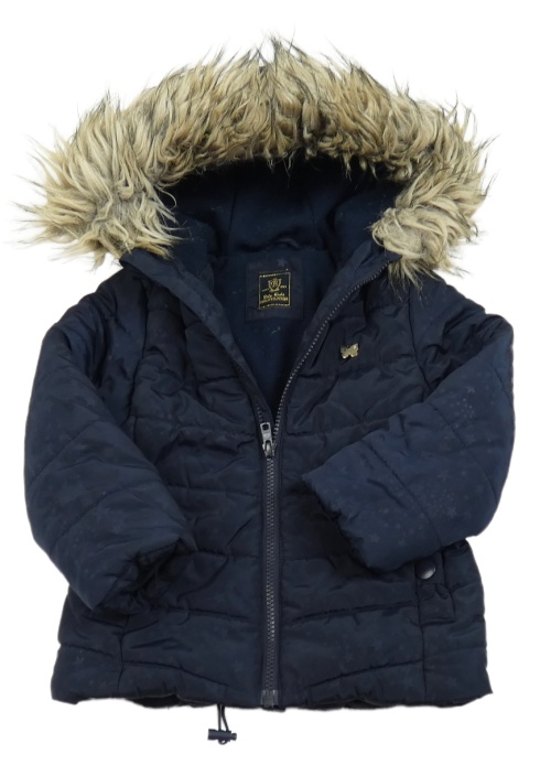 Tmavomodrá šušťáková zimná bunda s hvězdičkami, modrýlky a kapucňou