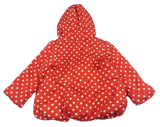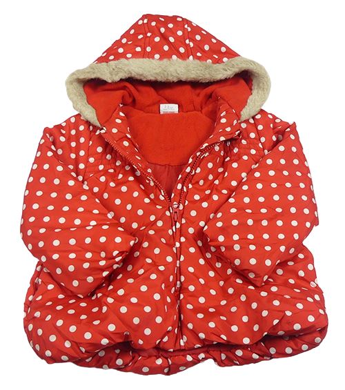 • Červeno-biela bodkovaná á šušťáková zimná bunda s kapucňou s kožešinou miniclub