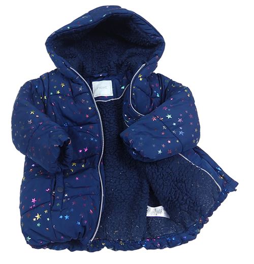 Tmavomodrá šušťáková zimná bunda s hviezdami a kapucňou Next