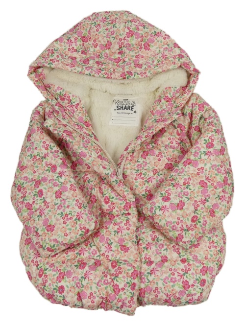 Smotanová šušťáková zimná bunda s kvietkami a kapucňou F&F
