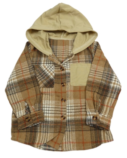 Hnedo-smetanovo-červená kockovaná košeľová bunda s kapucňou