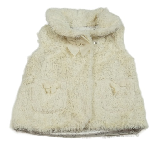 Smotanová kožušinová podšitá vesta s golierikom a mašľami Matalan