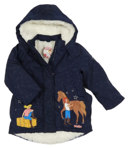 • Nové - tmavomodrá šušťáková zimná bunda s koněm a dievčatkom a kapucňou