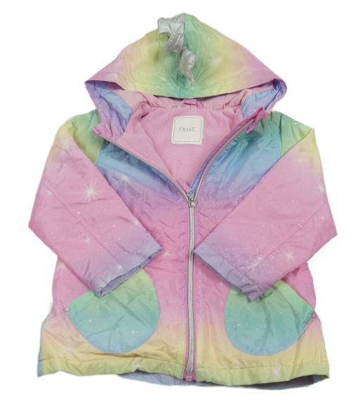 Duhová šušťáková jesenná bunda s hviezdičkami a kapucňou Next