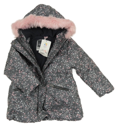 -Nové Sivá kvetinová šušťáková zimná bunda s kapucňou Topolino