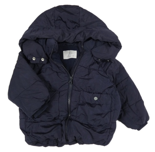 Tmavomodrá prešívaná šušťáková zimná bunda s kapucňou ZARA