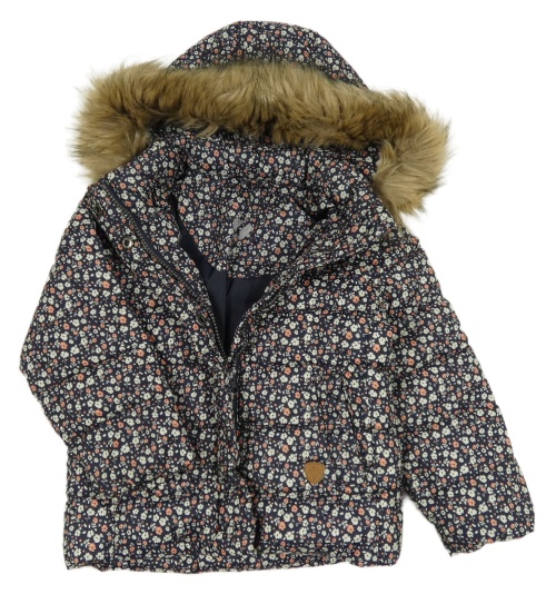Tmavomodrá kvietkovana šušťáková zimná bunda s kapucňou C&A