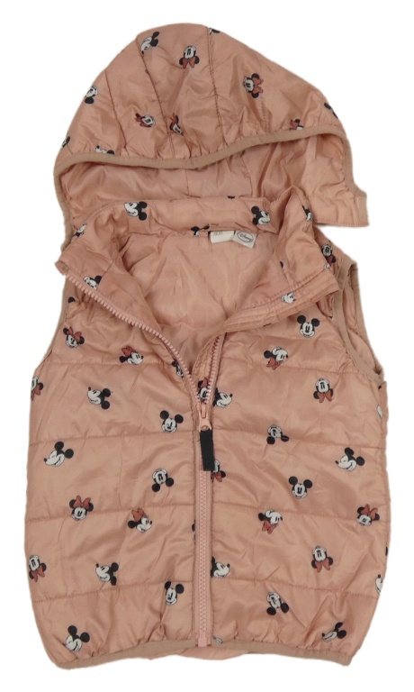 Svetloružová šušťáková prešívaná zateplená vesta s Minnií a kapucňou H&M