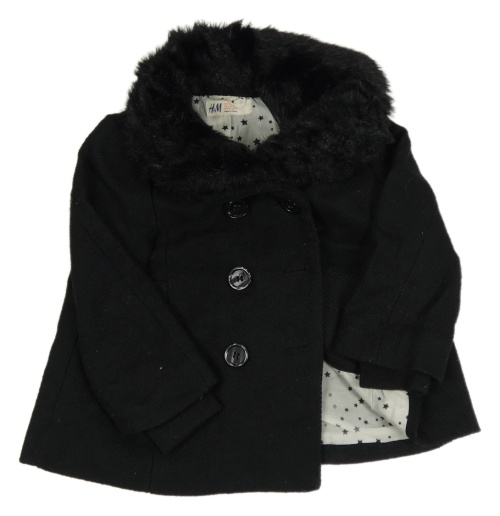 Čierny vzorovaný podšitý kabát s kožešinou H&M