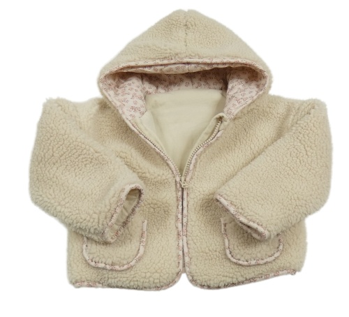 Smotanová huňatá zateplená bunda s kvietkami a kapucňou George