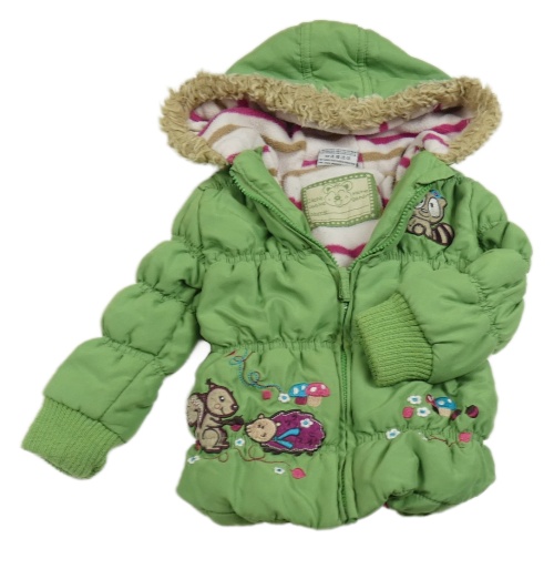 Zelená šušťáková zimná bunda so zvieratkami a kapucňou Topolino