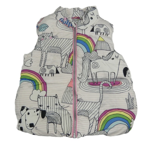 Bielo-ružová pruhovaná šušťáková zateplená vesta so zvieratkami Next