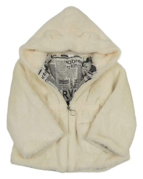 Smetanový kožešinový podšitý kabátek s kapucňou Shein