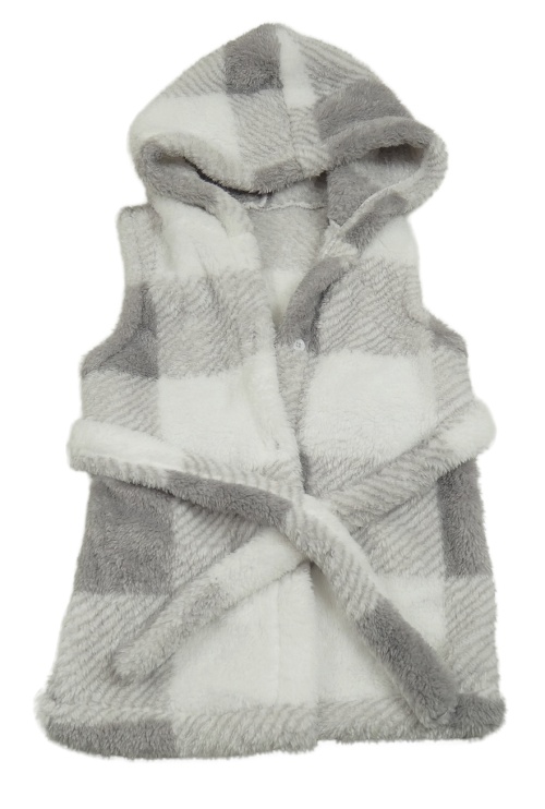 Bílošedá kockovaná plyšová vesta s kapucňou Shein