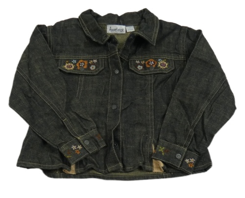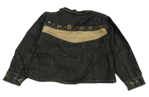 Tmavomodrá rifľová bunda s výšivkami květů Kiabi