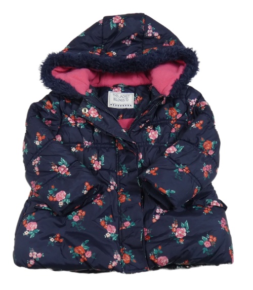 • Tmavomodrá kvetovaná šušťáková zimná bunda s kapucňou s kožešinou George