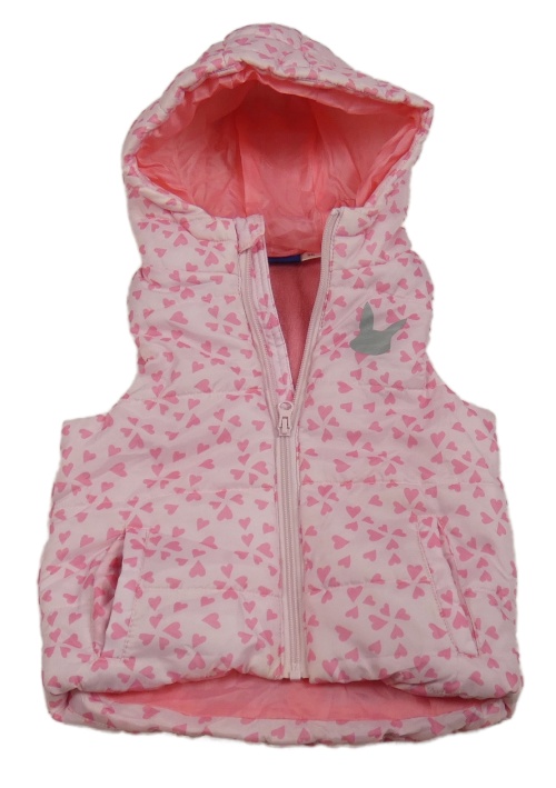• Svetloružová prešívaná šušťáková zateplená vesta so srdiečkami a zajačikom a kapucňou lupilu