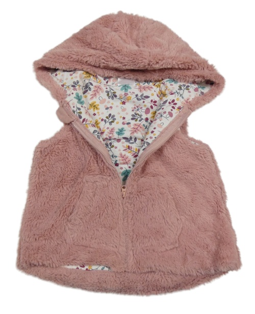 Ružová kožušinová podšitá vesta s kapucňou so cute