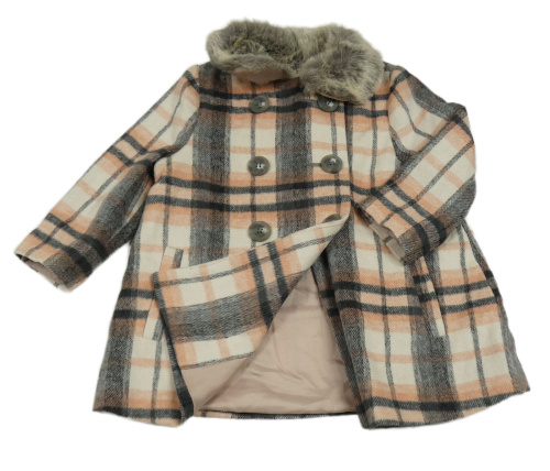 Bielo-čierno-ružový kockovaný vlnený kabát s kožúškom F&F