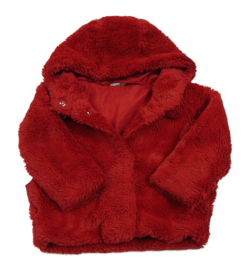 Červená chlpatá podšitá bunda s kapucňou George