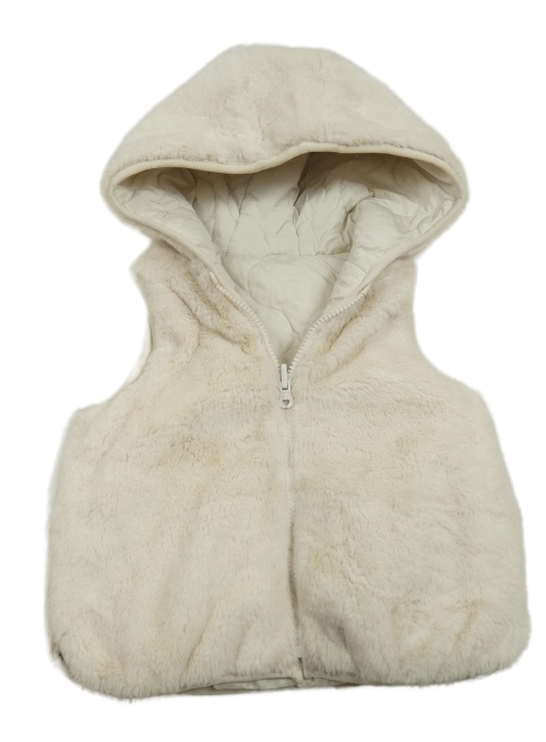 Smotanová šušťáková obojstranná zateplená vesta s kapucí F&F