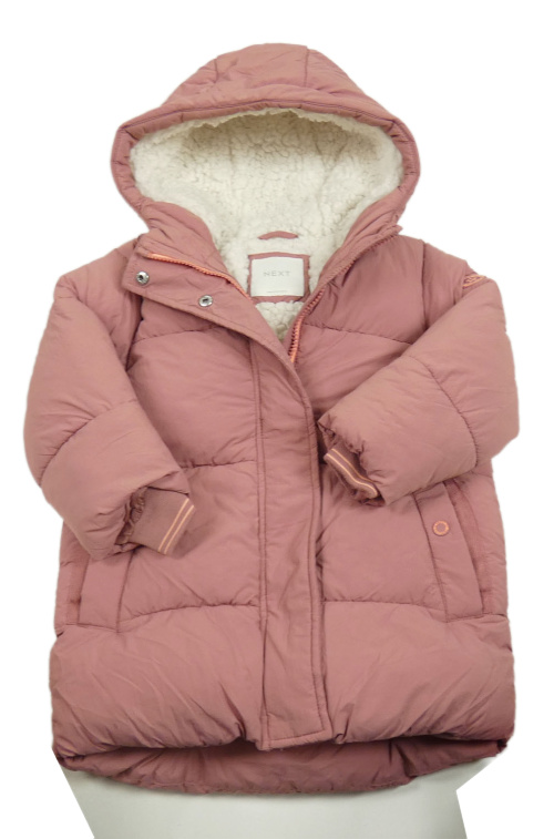 Ružový šušťákový prešívaný zimný kabát s kapucňou Next