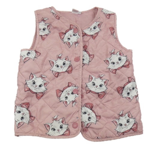 Staroružová prešívaná šušťáková zateplená vesta s kočičkami Marií Disney