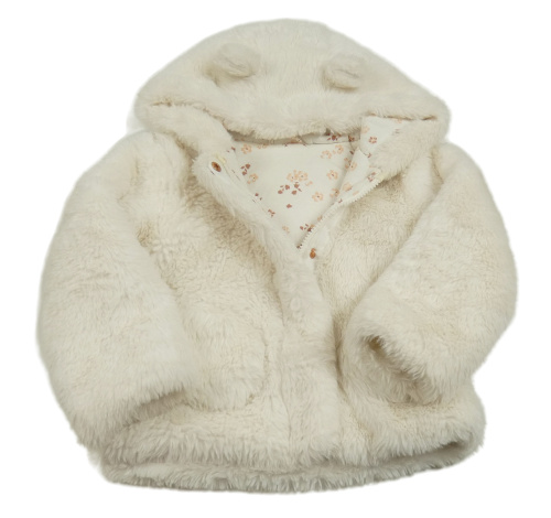 Smotanový kožušinový zateplený kabát s kapucňou s uškami St. Bernard