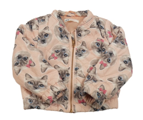 Broskvová prešívaná šušťáková zateplená bunda s kočičkami H&M
