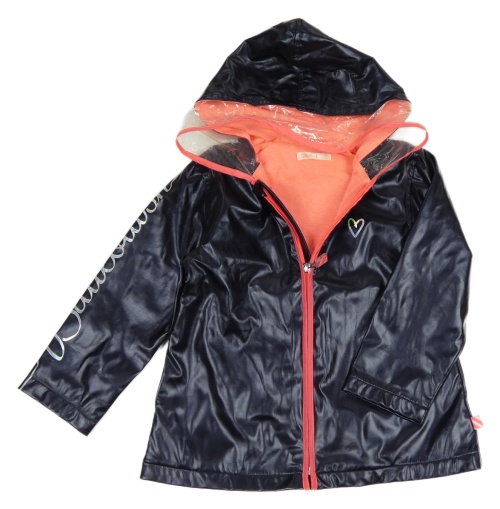• Tmavomodrá nepromokavá jarná bunda s metalickým srdiečkom a kapucňou Billieblush