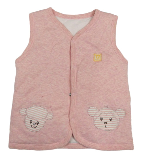 Ružová melírovaná tepláková zateplená vesta s medvěďom a ovcí