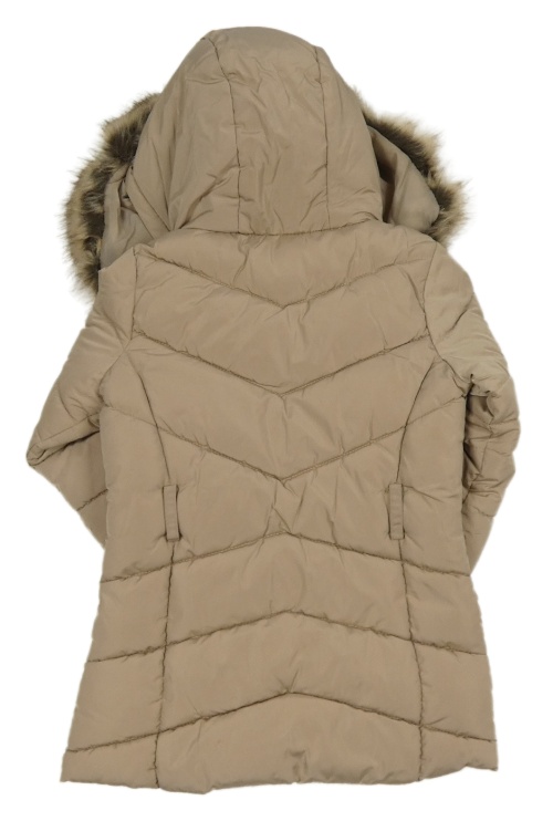 Béžový prešívaný šušťákový zimný kabát s kapucňou s kožešinou