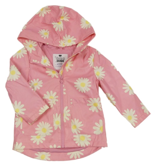 Ružová kvetovaná nepromokavá jarná bunda s kapucňou F&F