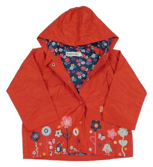 Červená šušťáková jarná bunda s kvietkami a kapucňou