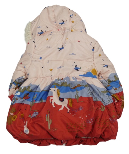 Svetloružová -červeno-modrá šušťáková zimná parka s obrázkami a kapucňou M&S