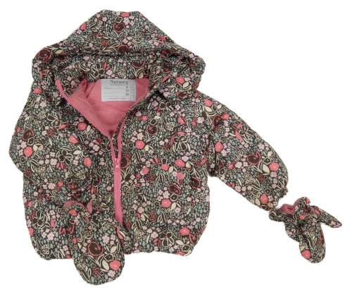 Hnedá kvetovaná šušťáková zimná bunda s kapucí + rukavice Nutmeg