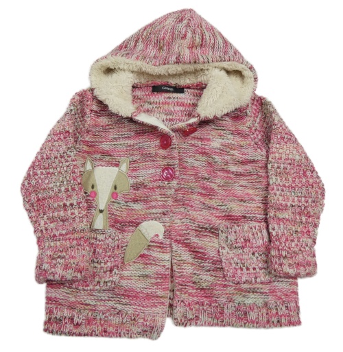Ružovo-bielo-hnedý melírovaný prepínaci sveter s líškou a kapucňou George