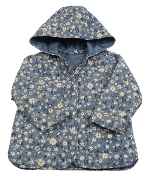 • Modrošedá šušťáková prešívaná zateplená bunda s kvietkami a kapucňou So Cute