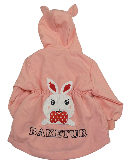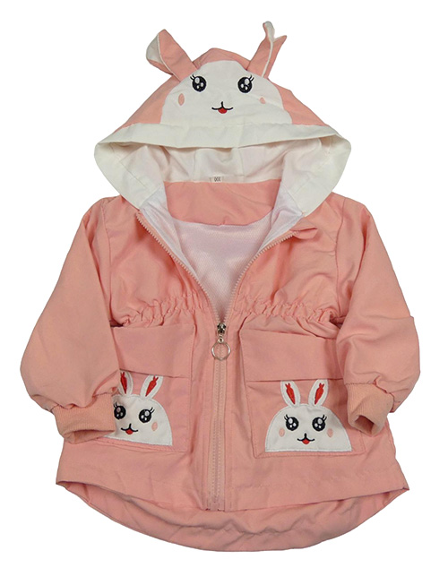Ružová šušťáková jarná bunda s králikmi a kapucňou