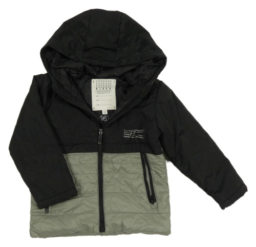 • Černo-světlekhaki prešívaná šušťáková zateplená bunda s nápismi a kapucňou RIVER ISLAND