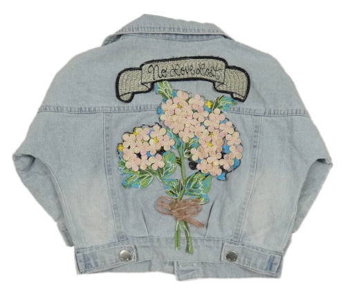Svetlomodrá rifľová bunda s 3D květy na zádech