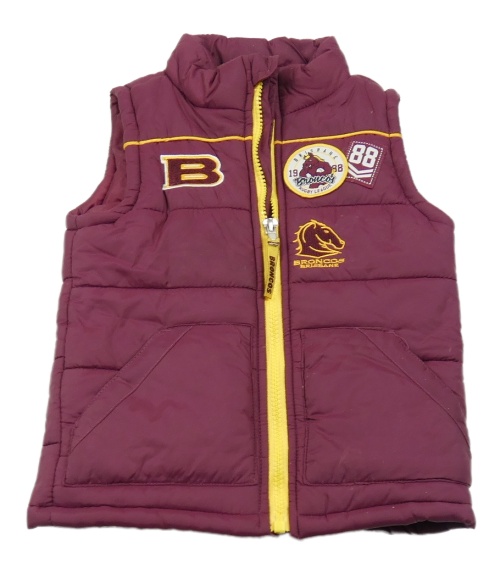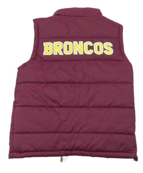 Vínová prešívaná šušťáková zateplená vesta s nášivkami a koníkem