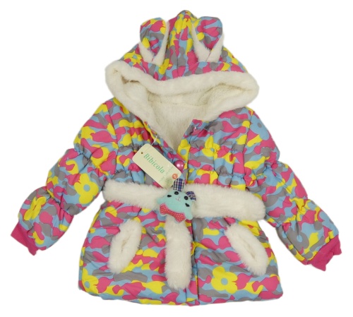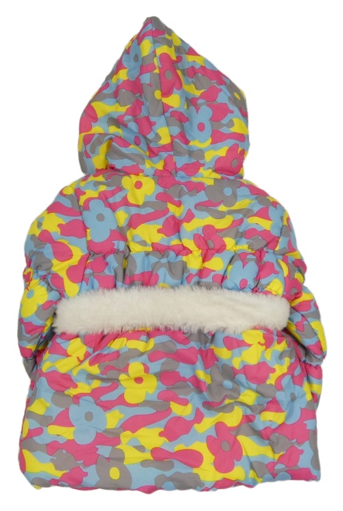• Nové - modro-žlto-ružová vzorovaná šušťáková zimná bunda s opaskom a kapucňou
