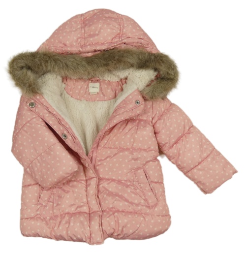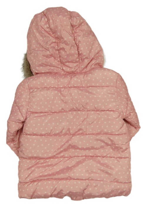 • Svetloružová prešívaná šušťáková zimná bunda so srdiečkami a kapucňou s kožešinou
